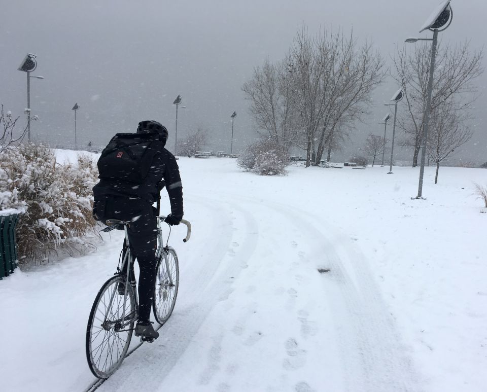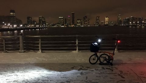 Besonders hart sind Schnee und Eis jedoch für das Material: Ab ca. 0 Grad Celsius fror mir regelmäßig die Vorderbremse am Brompton fest, meist auf der schnellen Abfahrt im eisigen Mikroklima der Williamsburg Bridge. Selbst die Nabenschaltung fror mir einmal ein. Die wahre Herausforderung sind jedoch die unglaublichen Mengen an aggressivem Salz von November bis April. Ich habe das Fahrrad schon mal mit in die Dusche nehmen müssen und nach Ende des Winters habe ich den Antrieb komplett erneuert, mit neuer Kette, Kettenblatt, Ritzeln und sogar den kleinen Ritzeln im Kettenspanner des Brompton. Jetzt läuft alles wieder wie neu.