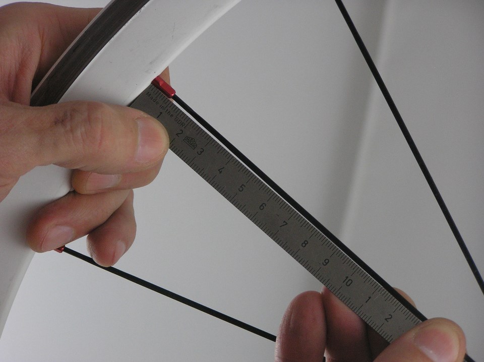Zuhause packt ihr am besten gleich mehrere Reservespeichen ein. Natürlich in den richtigen Längen. Mehrere Längen? Jawohl, denn oft sind die Speichen vorn und hinten, links und rechts verschieden lang. Die verbauten Längen können beim Fahrradhersteller oder beim Laufradbauer in Erfahrung gebracht werden. Ist beides nicht möglich, dann könnt Ihr die Länge einer eingebauten Speiche wie hier gezeigt ausreichend genau selbst messen.