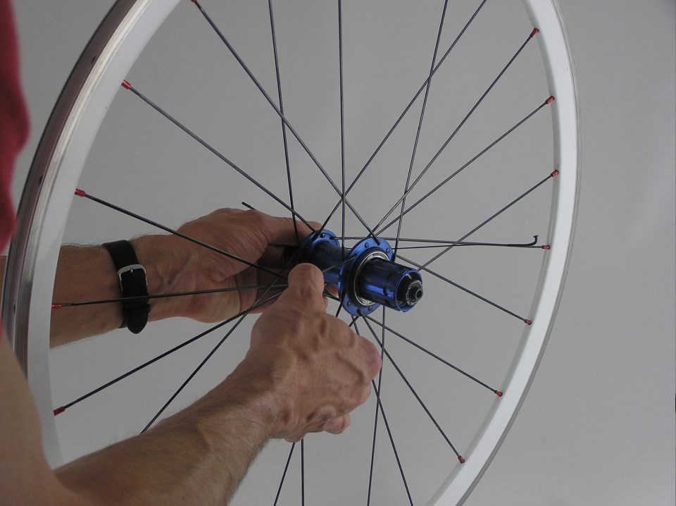 - Bruch durch äußere Beschädigung: Nur bei geringer Kilometerleistung (< 500 km) kommt der gezielte Austausch der sichtbar beschädigten Speichen in Frage, ansonsten auch hier eine Neueinspeichung.