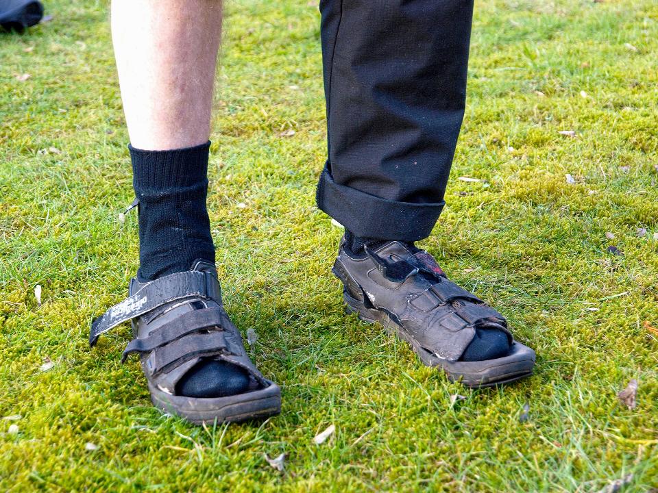 Da man Schuhe schlecht trocknen kann, erst recht unterwegs, ist der Hauptautor 2003 nach einer entsprechenden Urlaubserfahrung auf Sandalen umgestiegen: