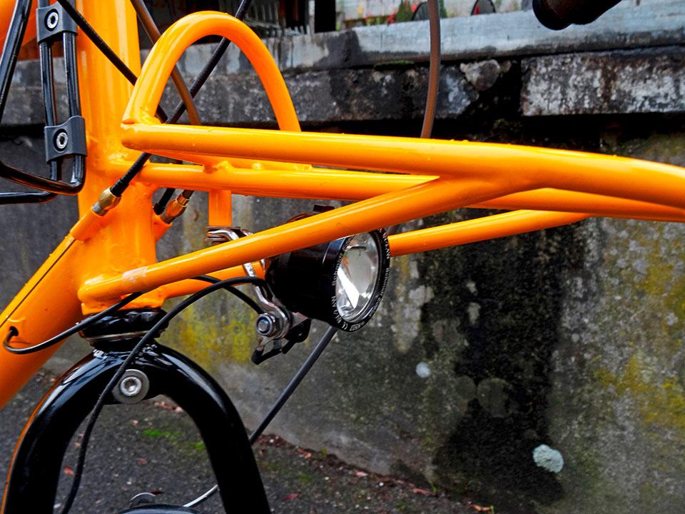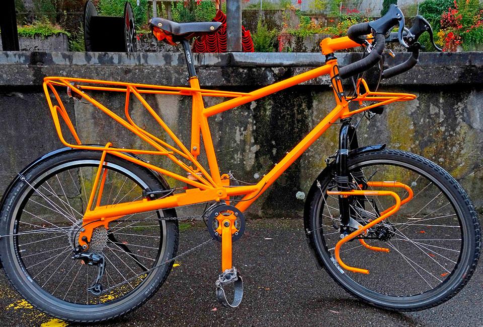 Ich baute einen steiferen Hinterbau, konstruierte einen neue Vorderradschwinge und versteifte die Schwingenlagerung. Auch hydraulische Schwingungsdämpfer kamen zum Einsatz. Schließlich reduzierte ich noch den Steuerrohrwinkel auf ein verträgliches Maß. Und siehe da: Das Flattern wurde immer seltener und jetzt fuhr sich das Rad sehr bequem. Ich verwende es seitdem regelmäßig für die Fahrt zur Arbeit und freue mich täglich: über den Federungskomfort und über die schöne Farbe!