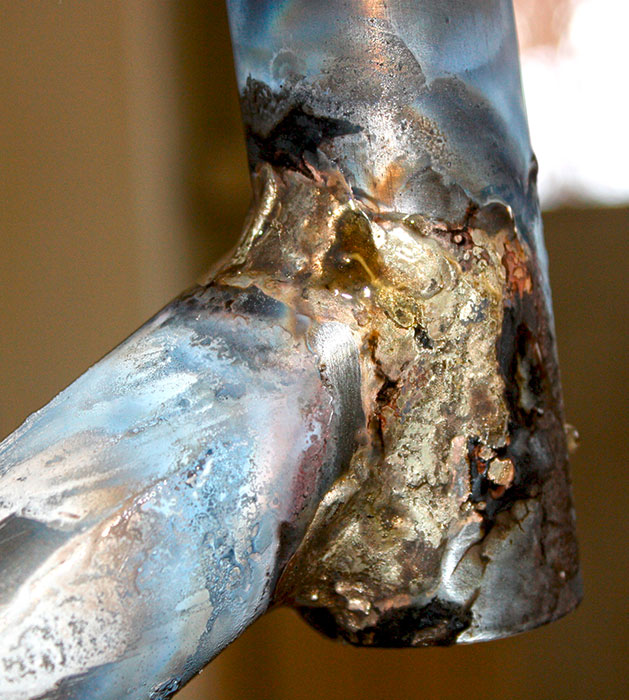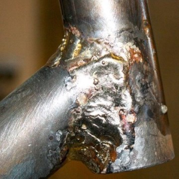 Die Verbindungen wurden Schritt für Schritt gelötet und wie von PATEREK (Tim Paterek: The Paterek Manual for Bicycle Framebuilders, 3rd edition (2004) ISBN-13: 978-0976124504) empfohlen, direkt in Bezug auf ihre Masshaltigkeit kontrolliert.