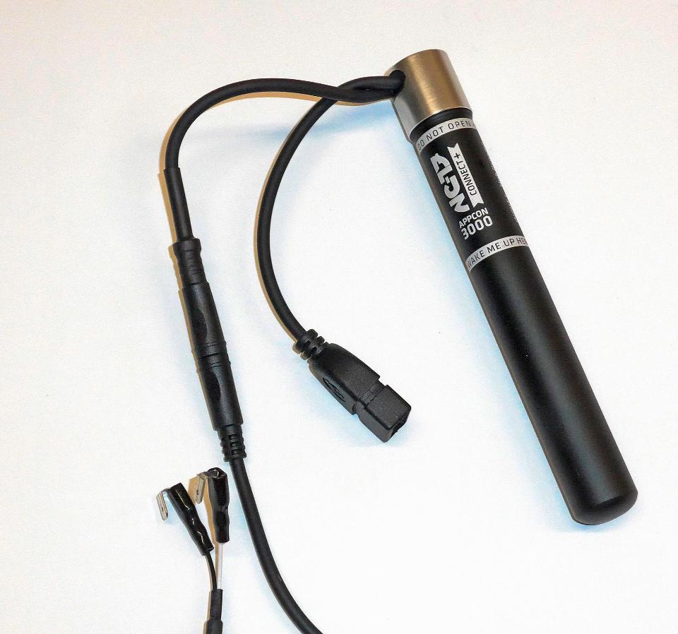Der »DynamoHarvesterPlus« von Thomas Treyer war bislang der leistungsfähigste kommerzielle Ladeadapter auf dem Markt. Mechanisch war das Produkt aber noch nicht so überzeugend, was die Abdichtung und elektrische Anschlüsse anbelangt. Vor einiger Zeit hat die Kölner Firma NC-17 – bekannt u.a. für ihre hochwertigen BMX-Pedale – Herrn Treyer ins Boot geholt und den »DynamoHarvesterPlus« als »Appcon GT« vertrieben. Nun gibt es den neuen »Appcon3000«. Dieser Ladeadapter kann entweder temporär in einer speziellen Hülse im Gabelschaftrohr untergebracht werden, aber auch am Flaschenhalter oder schlicht in der Lenkertasche »lose« betrieben werden. Das Kabel zum Nabendynamo hat eine wasserdichte, robuste Steckverbindung. Mit einem Adapterkabel kann der Pufferakku daran auch per USB-Netzteil aufgeladen werden. Die USB-Buchse ist gleichfalls an einem kurzen flexiblen Kabel herausgeführt. Der 3.000-mAh-Lithium-Ionen-Akku sollte ein modernes Smartphone einmal komplett aufladen können oder für 3–4 Stunden Navigation mit einem Smartphone ausreichen. Die Status-LED an der Oberseite zeigt den Betriebszustand, aber nur grob den Ladestand des Akku. Über Bluetooth LE und eine App lassen sich Ladestand, Ladeleistung und vieles mehr aber am Smartphone ansehen. Die Möglichkeit den »Appcon3000« einfach vom Rad zu trennen und als Powerbank mitzunehmen ist reizvoll.