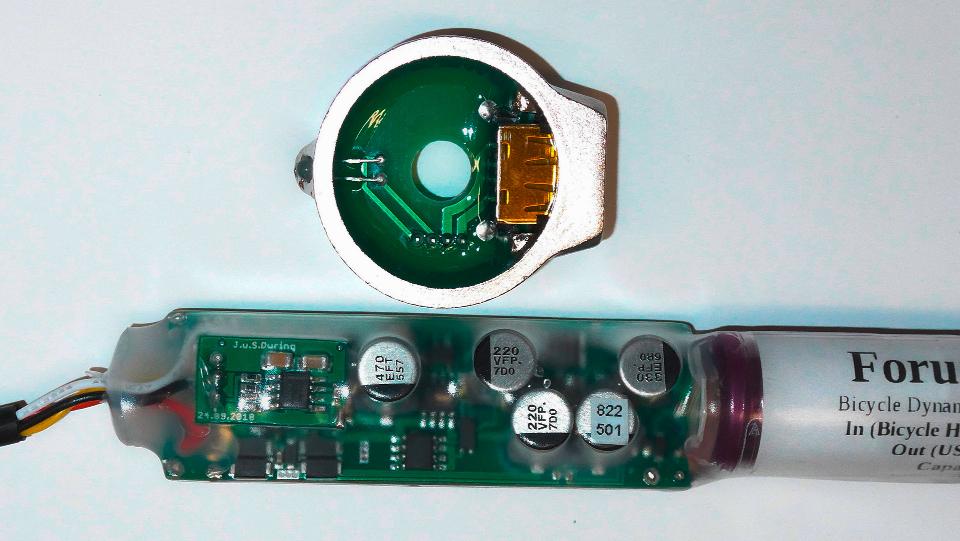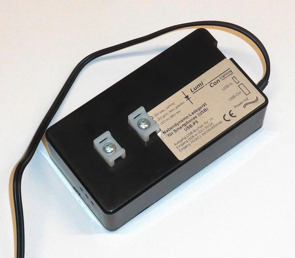 Das »USB-Werk« von Busch & Müller ist im deutschen Fahrradhandel leicht beschaffbar. Mit 70–90 € ist es eine überschaubare Investition. Das verschweißte Gehäuse ist wasserdicht und die Anschlusskabel sind austauschbar, falls der USB-Stecker mal Kontaktprobleme bekommen sollte. Nutzer von Garmin-GPS-Geräten kommen gut mit dem »USB-Werk« zurecht. Der kleine Pufferakku überbrückt bei diesen sparsamen Verbrauchern auch die längste Ampelpause und auch langsame Bergetappen reichen für die nötigen 1–1,5 W am USB-Anschluss aus. Reiseradler, die zum Navigieren das Smartphone immer eingeschaltet haben, berichten hingegen, dass das »USB-Werk« teilweise nicht genug Leistung zur Verfügung stellen kann. Das »USB-Werk« stellt somit eine Referenz für das untere Limit an Leistung dar. Schwächere Ladelösungen, insbesondere bei langsamer Fahrt, werden nur in Ausnahmefällen gefallen können.