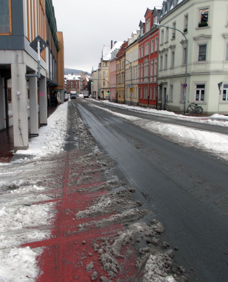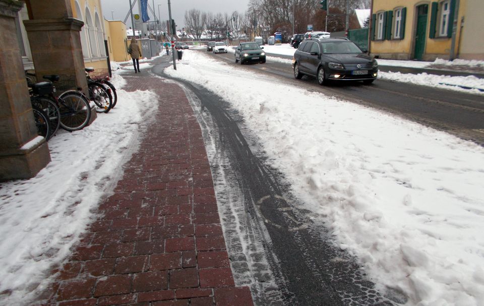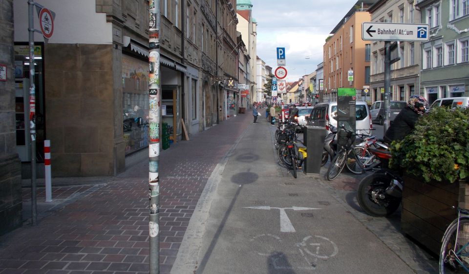 Die Stadt Bamberg fuhr währenddessen ungehindert fort, verschiedene Maßnahmen im Radverkehr umzusetzen, die jeglichem bautechnischen Regelwerk Hohn sprechen: Radfahr- und sogenannte »Schutzstreifen«, überwiegend untermaßig dimensioniert (selbst an überbreiten Fahrbahnen) und teils ohne seitliche Sicherheitsräume, ansonsten mit unzureichenden. Was nützt also mehr Geld im Haushalt, wenn es falsch ausgegeben wird?