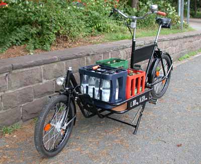 | Besonderes | Mopedfelgen und -bereifung; Zweipunktständer | hölzerne Transportbox, Zusatzausstattung für Kindertransport
