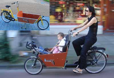 Aus Holland kommt das Cargobike, wahlweise in einer Kurz- oder Langversion. Hersteller Bakfiets zielt auf Familien und preist das Rad als Transporter für bis zu drei Kinder an. Entsprechendes Zubehör wie Sitze und Regenhauben für die Lastkiste sind verfügbar. Das Cargobike wird mittlerweile bis in die USA exportiert.
