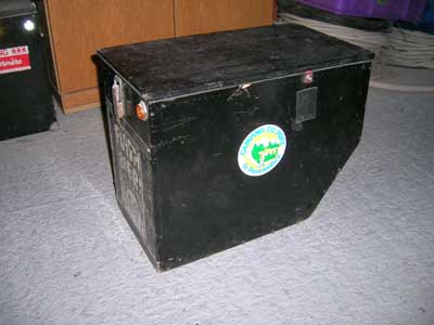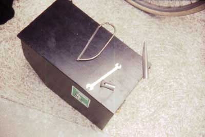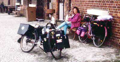 Ich kam eher zufällig darauf, Packtaschen aus Sperrholz zu bauen. Anfangs ersetzte ich die Rückwand der Packtaschen im Sechziger-Jahre-Design, mit denen ich meine ersten Fahrradurlaube unternahm, als die strukturgebende Pappe weich wurde, durch Sperrholzbretter (viele kleine Löcher gebohrt und an die Tasche genäht …). Als dann die Stoffteile mürbe wurden, kam mehr Holz dazu, und irgendwann lag es nahe die Tasche komplett aus Holz zu bauen. Das war so erstaunlich praktisch (endlich ein bequemer Sitzplatz beim Camping!), daß ich für mein damals entstehendes Reiserad auch vordere Packtaschen aus Sperrholz (20 cm × 30 cm × 40 cm) herstellte, diesmal etwas dünnwandiger und besser konstruiert. Neben Sitzplätzen für mehrere Mitreisende gab es jetzt auch einen Tisch.