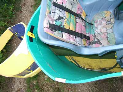 Es ist auch möglich, die Seitenwände über den Sitz hinaus nach vorne zu ziehen. Wenn der Sitz schmal ist, kann der Gepäckraum auch von vorne am Sitz vorbei beladen werden. Damit hat man auch ein praktisches Handschuhfach, wo man während der Fahrt Kleinigkeiten holen und reinstopfen kann. Bei meinem Tieflieger Jive habe ich das so realisiert. Die Seiten laufen oben spitz zu und werden mit einem Klettband verbunden, so kann man die Hutze von oben beladen. Bei meinem Alltags- und Stadt-Liegerad habe ich die Hutze im oberen Viertel den Koffer waagerecht durchschnitten und erhalte so einen Deckel, der mit einem Baumwolltuch als Scharnier einfach oben aufliegt, als Kofferraumklappe sozusagen.
