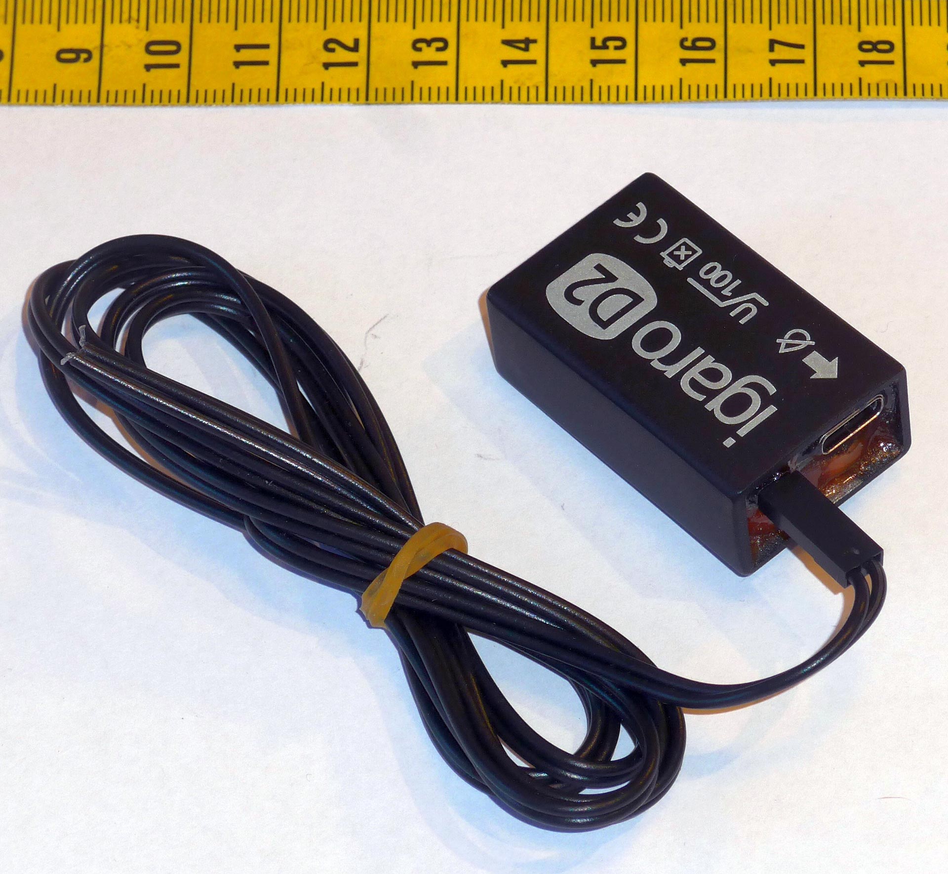 Andrew Charnley arbeitet seit Jahren an USB-Ladeadaptern unter der Marke Igaro. Das aktuelle Modell D2 enthält eine Microcontroller-Steuerung, welche die Eigenschaften des Wandlers an das Verhalten von Nabendynamo und USB-Verbraucher anpasst. Manchmal ist es irritierend, wenn das Gerät nicht sofort Spannung an USB liefert oder in einigen Situationen den Strom kurz unterbricht. Das Metallgehäuse ist das kleinste unter den getesteten Geräten. Es enthält nur die Anschlüsse zum Dynamo über zwei Metallstifte und eine USB-C-Buchse. Preis: ca. 186 €.