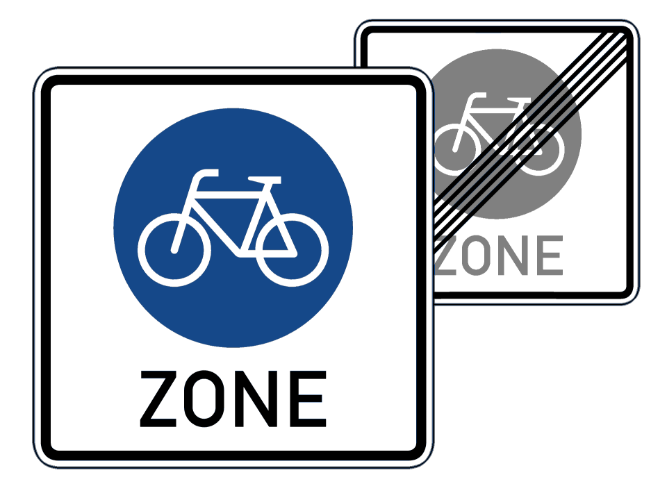 Es ist noch gar nicht so lange her, dass die Fahrradstraßen in die StVO Einzug gehalten haben, schon gibt es eine Erweiterung: die Fahrradzone. In der Praxis sind beide sehr ähnlich, es geht um Straßen, die vorrangig für die Nutzung mit Fahrrädern bestimmt sind, andere gegebenenfalls freigegebene Fahrzeuge (zum Beispiel Anlieger-Kfz) müssen besondere Rücksicht nehmen (was auch immer das über § 1 StVO hinausgehend heißen mag) und dürfen maximal 30 km/h fahren. Der Hauptunterschied zwischen Fahrradstraße und Fahrradzone liegt im Straßenraum, der damit ausgezeichnet wird. Fahrradstraßen werden entlang einzelner (geradliniger) Straßenzüge eingerichtet, Fahrradzonen decken (ähnlich wie 30er-Zonen) einen ganzen Bereich ab, die Beschilderung muss hier nicht hinter jeder Kreuzung wiederholt werden. Fahrradstraßen dürfen von Kfz (mit entsprechender Vorsicht) jetzt jederzeit überquert werden, das Befahren von Fahrradzonen ist für Kfz hingegen immer nur zulässig, wenn explizit eine Freigabe für diese vorliegt (was in der Praxis insbesondere für Anlieger wohl fast immer der Fall sein wird).