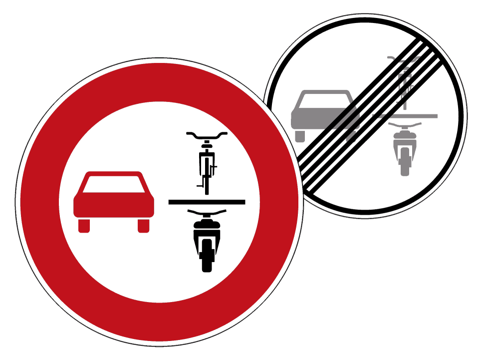 Neben den bereits angesprochenen neuen Schildern (Grünpfeil für Radfahrer, Fahrradzone), gibt es ab sofort auch ein Überholverbotsschild, was das Überholen auch von einspurigen Fahrzeugen durch mehrspurige Kfz verbietet.