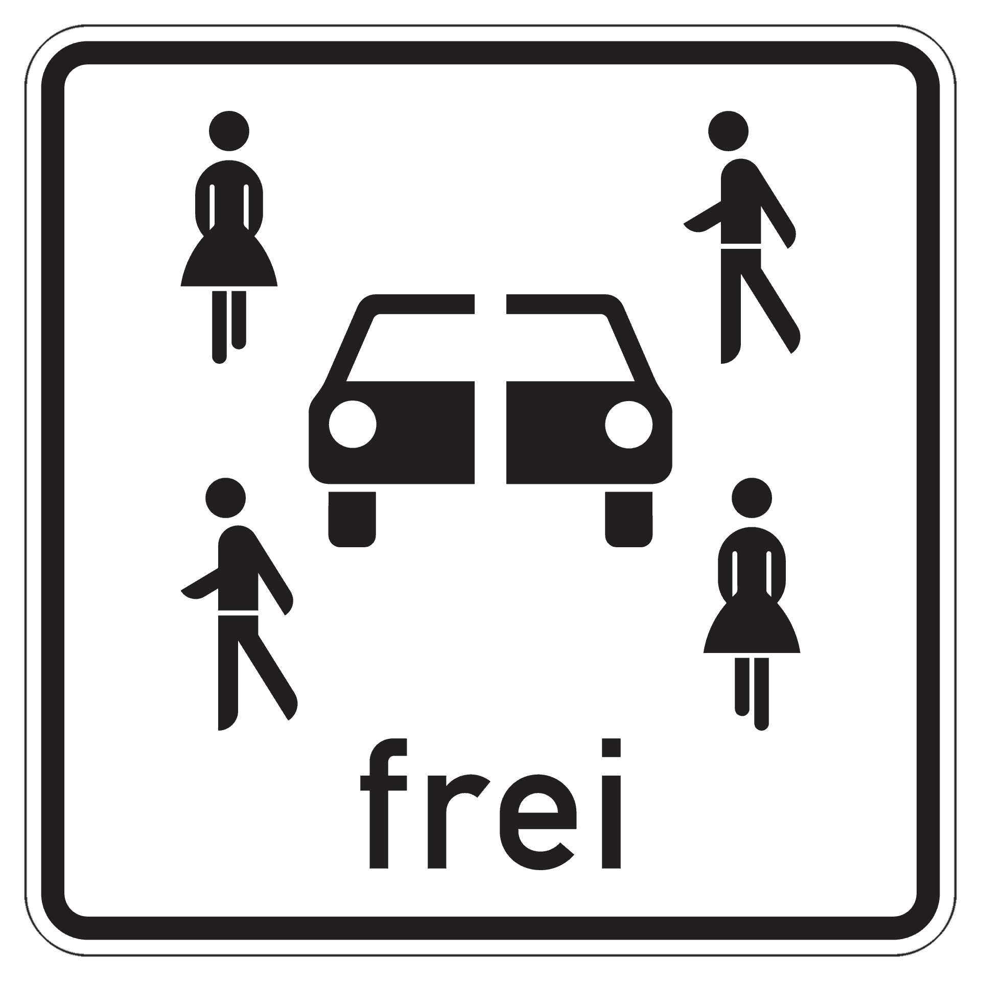 Als neue Zusatzzeichen werden unter anderem »Lastenrad«, »Elektroroller«, »E-Bikes«, »Wohnmobil« und »mit mindestens drei Personen besetztes Kfz« eingeführt. Letzteres dürfte schon nicht ganz selbsterklärend sein, zu noch häufigerem Achselzucken dürfte eine Montage aus einem vertikal zersägten Kfz und vier davon flüchtenden Personen führen (was »Carsharing« versinnbildlichen soll).