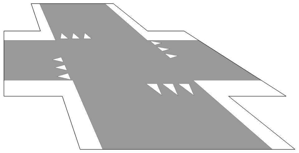 - Es sind Sonderspuren für Rechtsabbieger an Kreuzungen vorbei (sogenannte »freie« Rechtsabbieger) angelegt, die baulich bedingt sehr hohe Abbiegegeschwindigkeiten und schlechte Sichtbeziehungen zulassen.