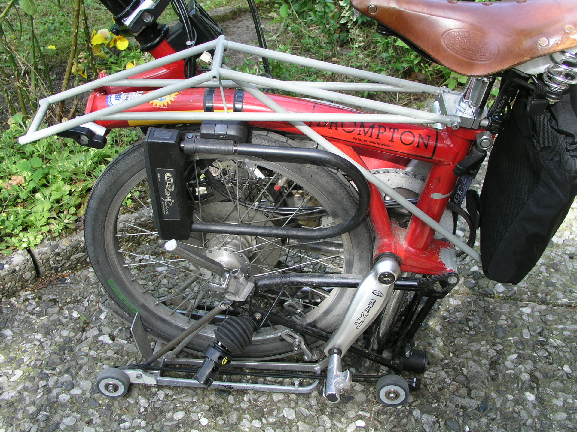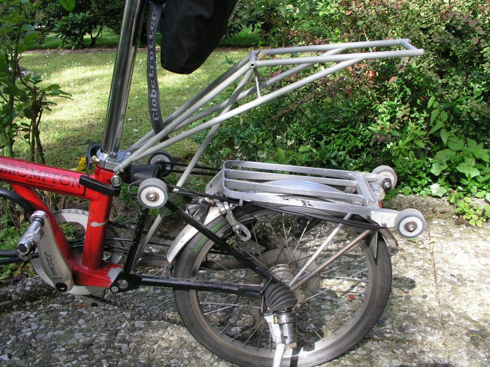 Der Träger ist für die alten, kurzen Brompton-Rahmen gebaut. Die neuen Rahmen sind etwas länger; das stellt also kein Problem dar.