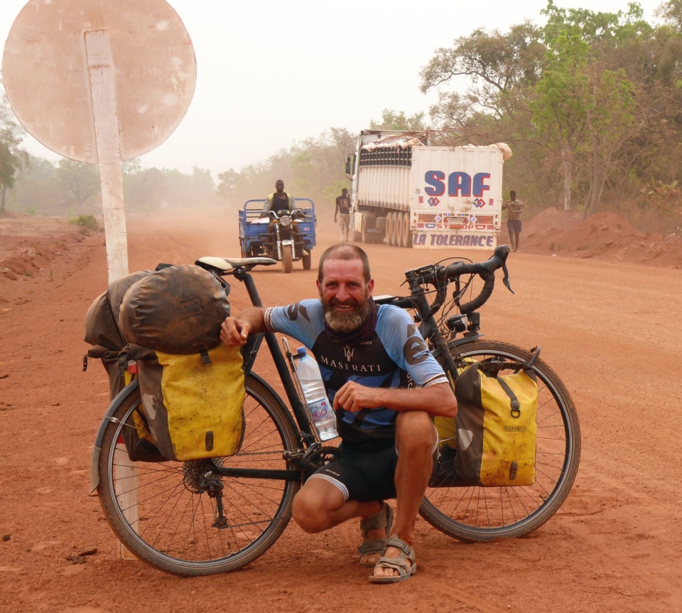 Jason Kind, 51-jähriger Engländer, mit dem Plan, Afrika per Rad zu umrunden, wartet derzeit in Côte d’Ivoire auf die Grenzöffnung nach Ghana. Er berichtet von seiner durch Corona zwangsweise unterbrochenen Reise aus Westafrika.