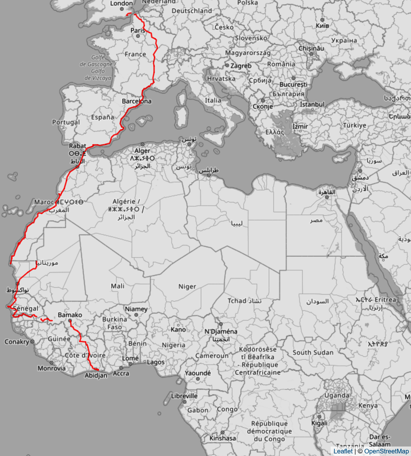 2019 brach ich von London aus über Frankreich und Spanien nach Afrika auf. Das Ziel: eine vollständige Umrundung Afrikas. Ich bin mit einem 2011er Cannondale Caadx unterwegs – ein eher billiges Cyclocross-Rad und eigentlich nicht für eine lange Radreise gebaut, aber es hat den Ruf, langlebig und flexibel zu sein. Ich habe es bereits bei meinen lokalen Bike-Club-Events verwendet und einige Triathlons damit absolviert. Obwohl die dickeren Reifen und die weniger sportliche Sitzposition schon viele Bemerkungen hervorriefen, war dieses Bike der Beginn der dramatischsten Veränderungen in meinem Leben.