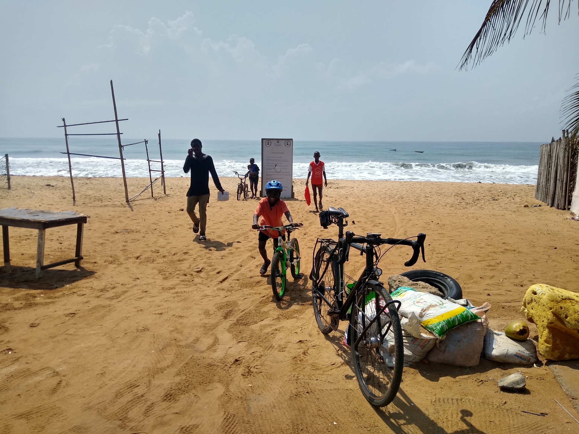 Aber andererseits: Die Muslime hier an der Westküste lassen einen am Abend niemals ohne Einladung zum Essen passieren. Nie wurde mir ein Platz für mein Zelt verweigert. Hier in Grand-Bassam lebe ich frei und ohne Angst. Leider spreche ich immer noch kein Französisch, so ist es fast unmöglich, den Menschen näherzukommen. Aber das Lächeln vieler Ivorer jeden Alters, denen ich regelmäßig begegne, erfreut mich jeden Tag aufs Neue. Jedes Mal, wenn ich mich auf mein Fahrrad schwinge, um durch die Gegend zu fahren, fühle ich mich glücklich, genau hier festzusitzen.