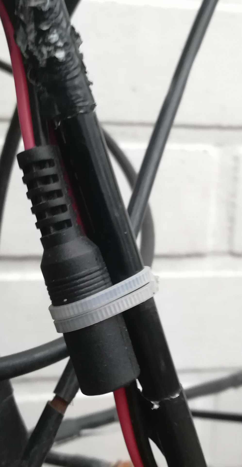 Der Anschluss an den Nabendynamo erfolgt meiner Meinung nach am besten durch eine Hohlstecker-Hohlbuchsen-Kombination. Am einfachsten kauft man ein Niedervolt-Verlängerungskabel, schneidet das Kabel durch und schließt das Ende mit der Buchse parallel zum Licht an den Nabendynamo an. Die Buchse kann man dann irgendwo im Bereich des Lenkers nach unten gerichtet montieren, sodass man eine »Steckdose unterwegs« hat. Bild 3 zeigt eine Buchse am Frontgepäckträger, die gefühlt seit fünf Jahren im Gebrauch ist. Das andere Ende des Kabels kann man dann für den USB-Lader verwenden. Durch Stecker und Buchse kann meistens auf einen zusätzlichen Einschalter für den USB-Lader verzichtet werden.