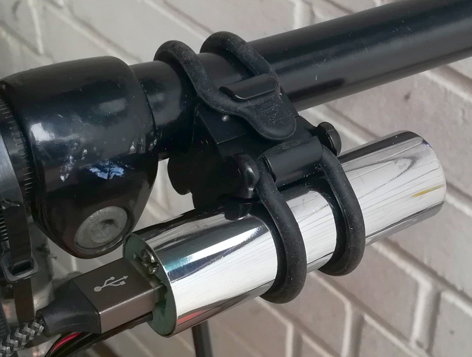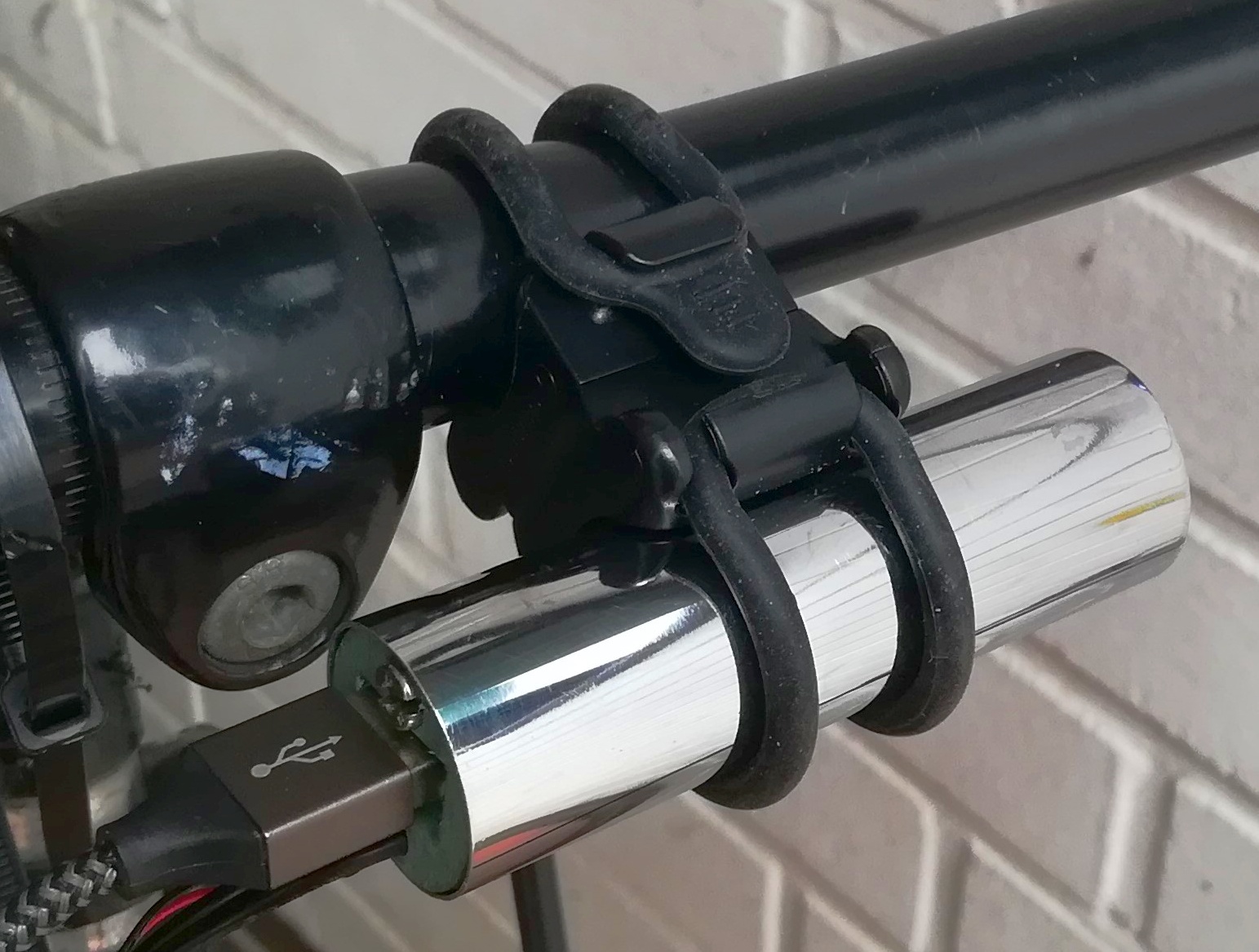 Falls der USB-Lader direkt am Fahrrad montiert werden soll, geht das relativ einfach mit einer Taschenlampenhalterung (siehe Bild 4). Bei Nichtgebrauch können USB-Lader und Halterung einfach abgenommen werden. Dafür muss das Gehäuse rund sein und sollte nicht mehr als 30 mm Durchmesser haben.