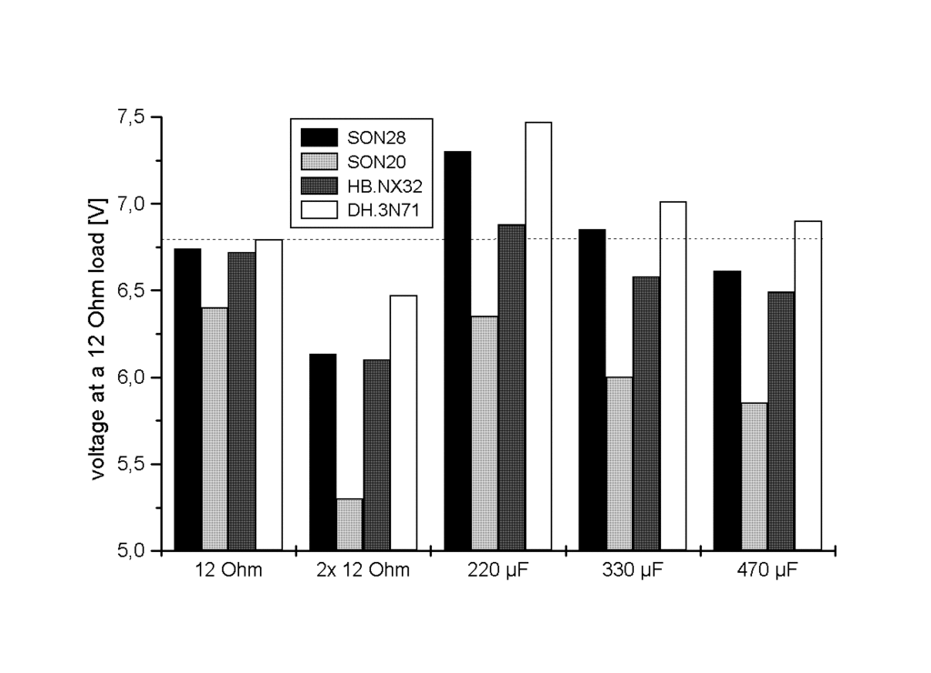 | Elektrische Last | 1 × 12 Ω | 2 × 12 Ω | 2 × 12 Ω + 330 µF |