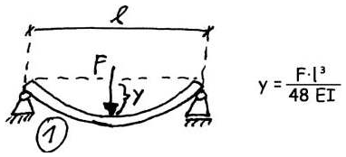 Beispiel: Ich biege eine Gepäckträgerstrebe der Länge l übers Knie, dem Fall 1 entsprechend – so dass die Strebe um einen Zentimeter elastisch nachgibt.