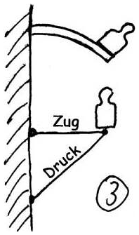Nun schweiße ich ein Ende an einem Stahltürrahmen fest und drücke wieder mit dem Knie drauf, mit der gleichen Kraft, diesmal am äußeren Ende – entsprechend Fall 2, dem sogenannten Kragträger.
