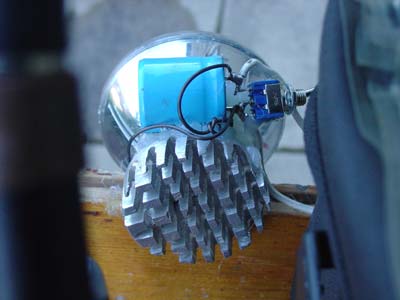 Zu sehen sind die damals gängigen Eigen-Bauarten, bestückt mit den in dieser grauen Licht-Vorzeit marktführenden Luxeon-LEDs: Eine 3-Watt-LED in einer »Mobdar«-Taschenlampenoptik aus Kunststoff, eine weitere »quer« in einen halben Fahrradscheinwerfer eingesetzt, und schließlich einen 5-Watt-Side-Emitter (Foto) in einem ganzen Scheinwerfer.