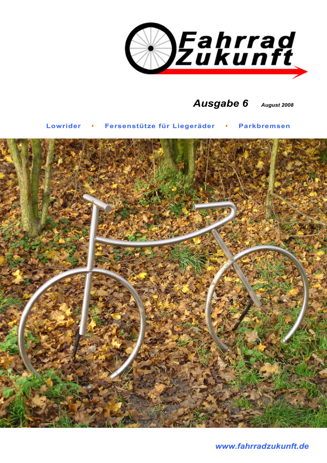 Zur aktuellen Ausgabe: Gelesen: Reiner Dölger über die Neuauflage von D.G.Wilsons »Bicycling Science« und Peter de Leuw über D. Kettlers ebenfalls neues »Recht für Radfahrer«. Stefan Buballa liefert einen »beim Globetrotten gesehen«-Nachtrag zum Lowrider-Thema der Ausgabe 4. Zusammen mit Peter de Leuw habe ich mal das (erstaunlich unbekannte) Thema Eigenbau-Parkbremsen angeschnitten. Erstaunlich, Radfahren ohne Klickies ist doch möglich. Rolf Tiemann berichtet über seine Eigenbau-Fersenstützen für Liegeräder – toller Beitrag, soo stelle ich mir Fahrradzukunft eigentlich vor, bitte mehr davon.