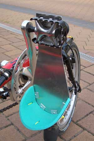 Barfuß fahren ist sehr bequem. Die Aluplatte ist stabil und tragfähig. Die Isomatte dämpft den Kontakt mit dem harten Untergrund angenehm ab und isoliert auch gegen unangenehme Temperaturen.