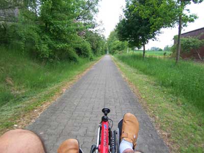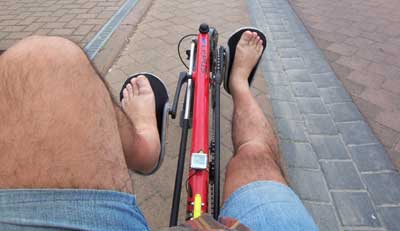 Bei allen Liegerädern gibt es ein Problem. Weil man im Liegen fährt, tritt man zwangsläufig mehr oder weniger waagrecht gegen die Pedale. Weil die Schwerkraft aber senkrecht wirkt und die Beine nicht gerade leicht sind, besteht ständig die Möglichkeit, dass einem die Füße von den Pedalen rutschen. Weil dies aber meistens schmerzhaft und sehr gefährlich ist, muss es unbedingt verhindert werden.