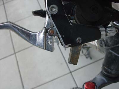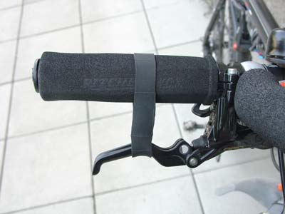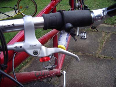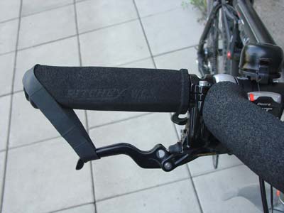 Zum ersten Mal eine Fahrrad-Parkbremse bewusst wahrgenommen habe ich vor 24 Jahren – am Reiserad eines Briten, deep down in Africa. Eine zierliche dreistufige schwarze Kunststoffklammer mit einer schwarzen Perlonschnur als Verliersicherung. Kein Eigenbau, sondern ein Produkt der Marke Jim Blackburn, das nicht billig war (ich meine, irgendwo mal 17 Dollar gelesen zu haben).