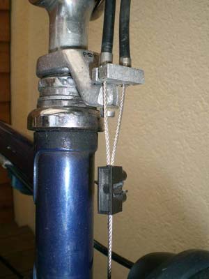 Abgesehen vom Normalparken ist eine Parkbremse aber auch in vielen anderen Situationen vorteilhaft – etwa beim Parken auf Schrägen oder Treppen (z. B. zum Anschließen am Treppengeländer) und im Bahn-Gepäckabteil, wo sie einen souverän sicheren Stand bietet. Oder beim Anschließen an ein Verkehrsschild – plötzlich ist auch die sonst extrem kippelige Einpunkt-Anlehnung relativ stabil. Und nicht zuletzt beim Kurzparken »vorm Bäcker« als Wegfahrsperre. Zwar hat sich noch kein richtiger Dieb an meinen so »gesperrten« Rädern vergriffen, dafür diverse unautorisierte Personen: ordnungssüchtige Hausmeister, Ladenbesitzer, wichtige Uniformträger und gewisse parkplatzsuchende Autofahrer, die radikal alles wegschieben, was nicht nagelfest ist. Bisher haben meine Parkbremsen sie ALLE gefoppt: Das verdammte Rad ließ sich partoutnicht schieben – und den Intelligenztest (woran liegt das? – an sich offensichtlich) hat KEINER bestanden :o)