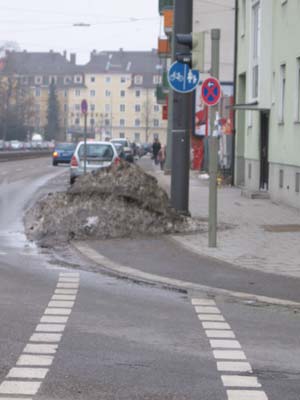 - Absteigen, Haufen umgehen und auf dem Radweg weiterfahren