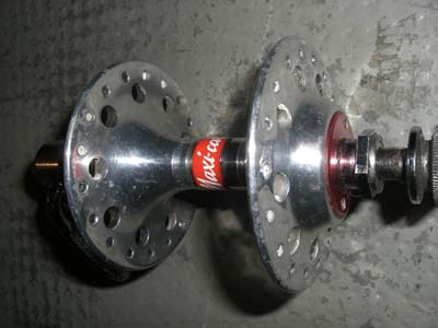 Aber oft bin ich bei meinen »genialen« Optimierungsversuchen halt auch auf die Nase gefallen: So glaubte ich bei meinem Eigenbau-Reiserad z. B. fest daran, dass jedes Bauteil individuell ausgesucht sein müsste … und schleppte so z. B. für eine hübsche und sündhaft teure 48-Loch Schraubkranz-Nabe von Maxi-Car brav eine spezielle Ersatzachse über alle Pässe. Nur um festzustellen, dass nach einem Defekt an der Nabenhülse am Fuß des Col de l'Iseran zwar ein Fahrradladen, aber natürlich keine 48-Loch Nabe aufzutreiben war. Und das, obwohl das gute Stück sogar ein französisches Produkt war!