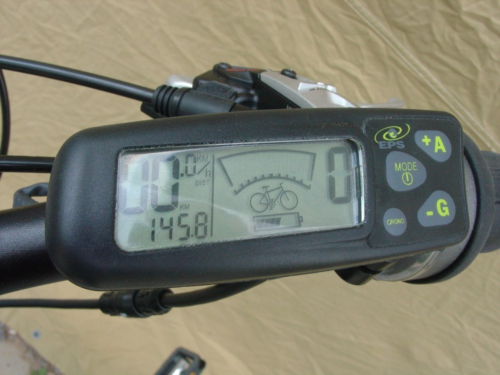 Ebenfalls nicht glücklich bin ich mit der Konsole, die ziemlich unergonomisch gestaltet ist: Um die Tasten zu bedienen, muss ich die Hand vom Lenker nehmen und mit mehr oder weniger gestreckten Fingern von oben draufdrücken. Und das leicht gewölbte Schutzglas des Displays spiegelt ohne Ende. Hier hat der Konstrukteur seine Hausaufgaben noch nicht gemacht. Diese Konsole macht sich vielleicht gut bei Kunstlicht auf dem Labortisch, aber nicht mehr gut an einem Fahrzeuglenker draußen auf freier Wildbahn. Erfahrene Fahrradteile-Konstrukteure (z. B. bei Shimano) hätten das mit wenig Aufwand wesentlich besser gestalten können.