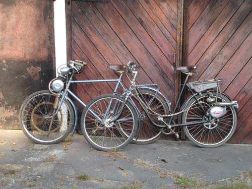 Mein neues Vehikel war so weit. Der Motor vom VeloSolex entnommen, mit anderer Düse zwecks Verwendung von Alkohol und Rizinusöl als Alternativtreibstoff, ein besserer, nochmals deutlich leiserer Auspuff aus Edelstahl und anderen kleinen Veränderungen war an ein altes Bianchi Rennrad montiert und lief leise blubbernd unter Hinterlassung des Geruchs mehrer Fish and Chips Standeln.